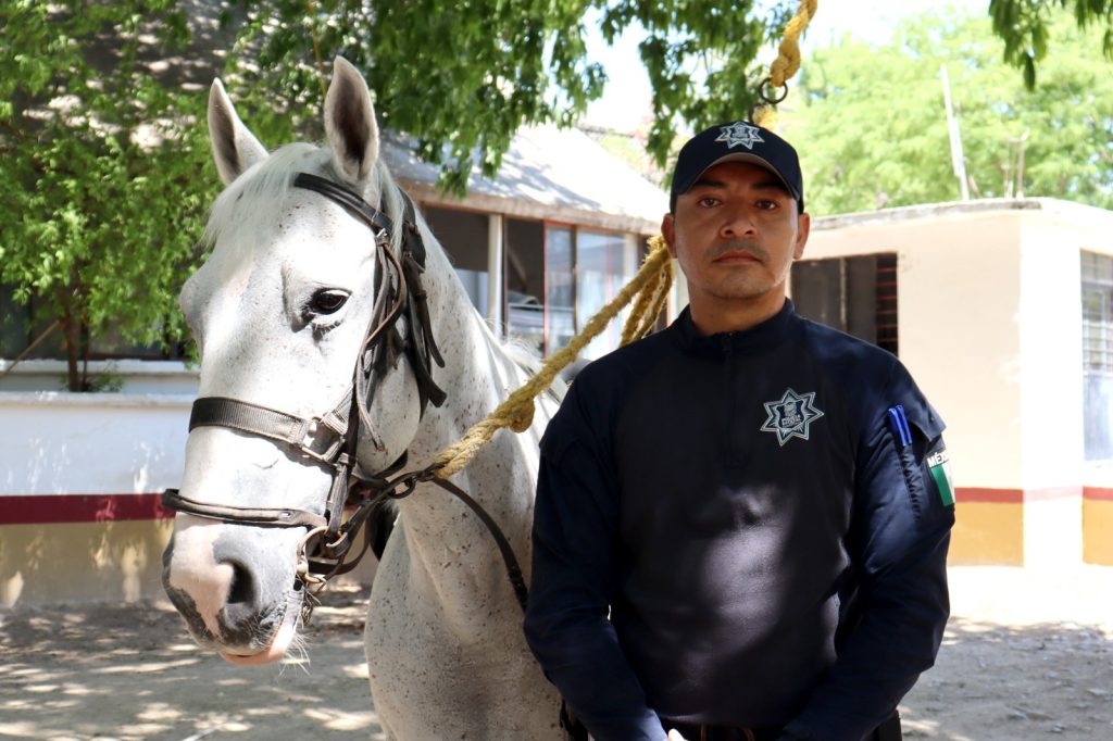 Uno de los principales retos a los que se enfrenta el personal recién ingresado al agrupamiento equino es ganarse la confianza del caballo, explicó el Policía Tercero “A” Saúl Cortés Reyes, por lo que durante las capacitaciones se busca interactuar con los 56 equinos que integran el agrupamiento.