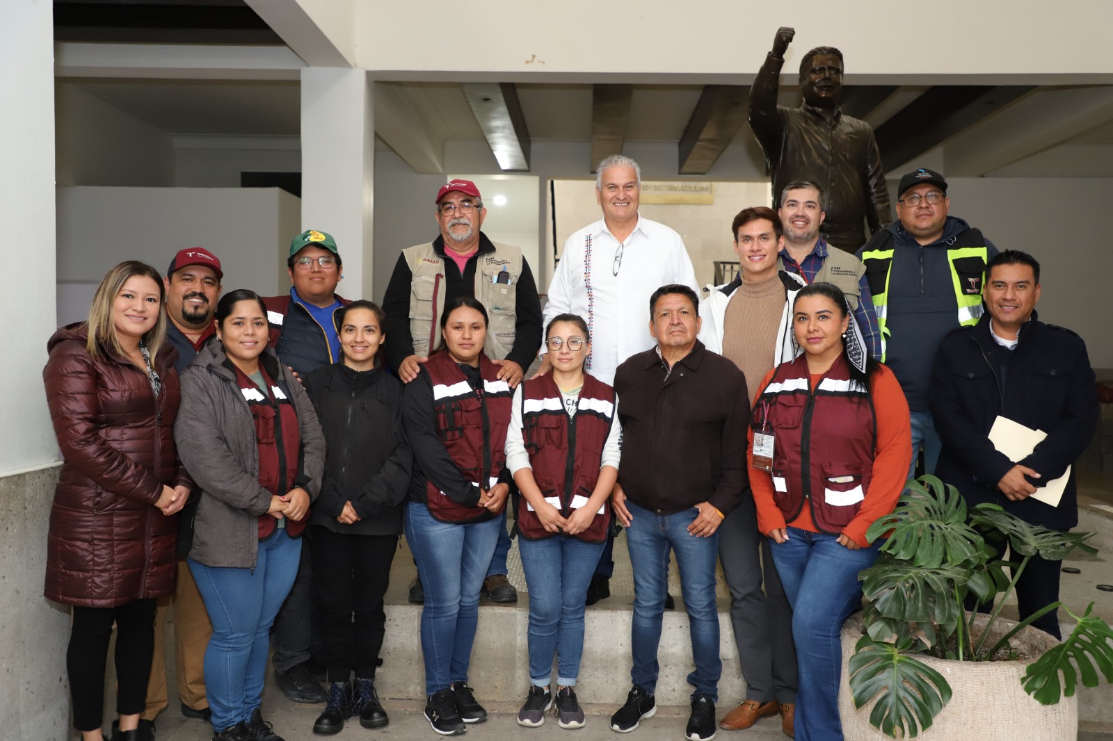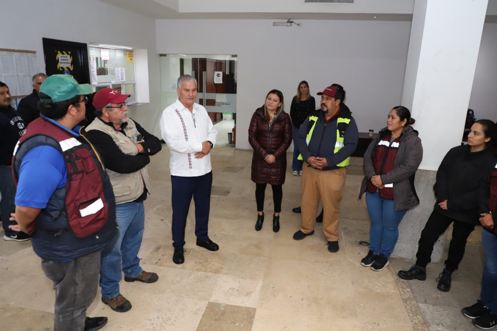 Acompañado del director del Centro Regulador de Urgencias Médicas (CRUM), Carlos Arturo González Castro y la directora del Primer Nivel de Atención, Brenda Plata Flores, el secretario de Salud, reconoció las labores de los 15 trabajadores que se desplazaron a la zona afectada por este fenómeno natural.