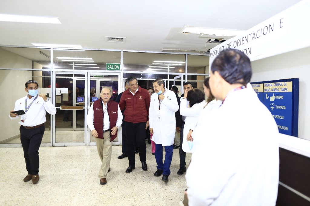 El gobernador Américo Villarreal Anaya continuó este jueves con su recorrido por los hospitales del estado y, en esta ocasión, visitó el Hospital Civil y el Hospital General de Nuevo Laredo, en donde recibió el reconocimiento de personal médico y de enfermería por el programa de basificación que está en marcha y que permitirá otorgar seguridad laboral a trabajadores y trabajadoras del sector salud que han esperado hasta más de 15 años.