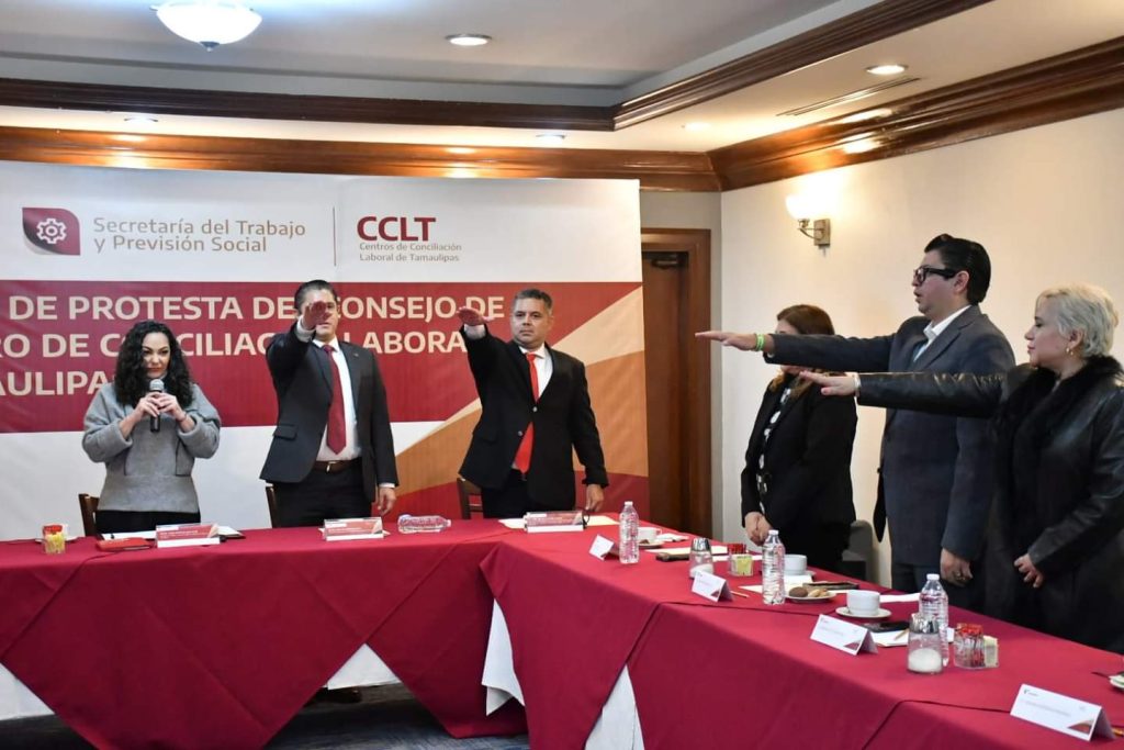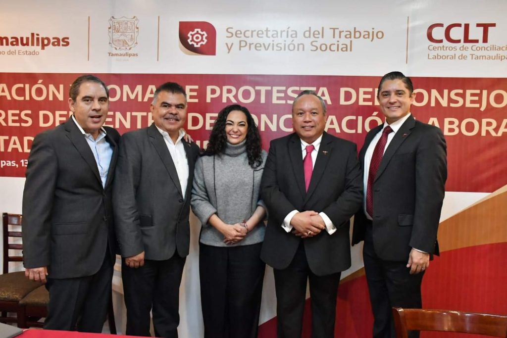Reynosa, Tamaulipas.- Con la participación de destacados abogados y abogadas laboralistas de Tamaulipas, la secretaria del Trabajo, Olga Patricia Sosa Ruíz, tomó la protesta al Consejo de Asesores del Centro de Conciliación Laboral del Estado, integrado por personalidades distinguidas en el ámbito, que serán parte del diálogo enriquecedor para seguir fortaleciendo el nuevo sistema de justicia laboral.