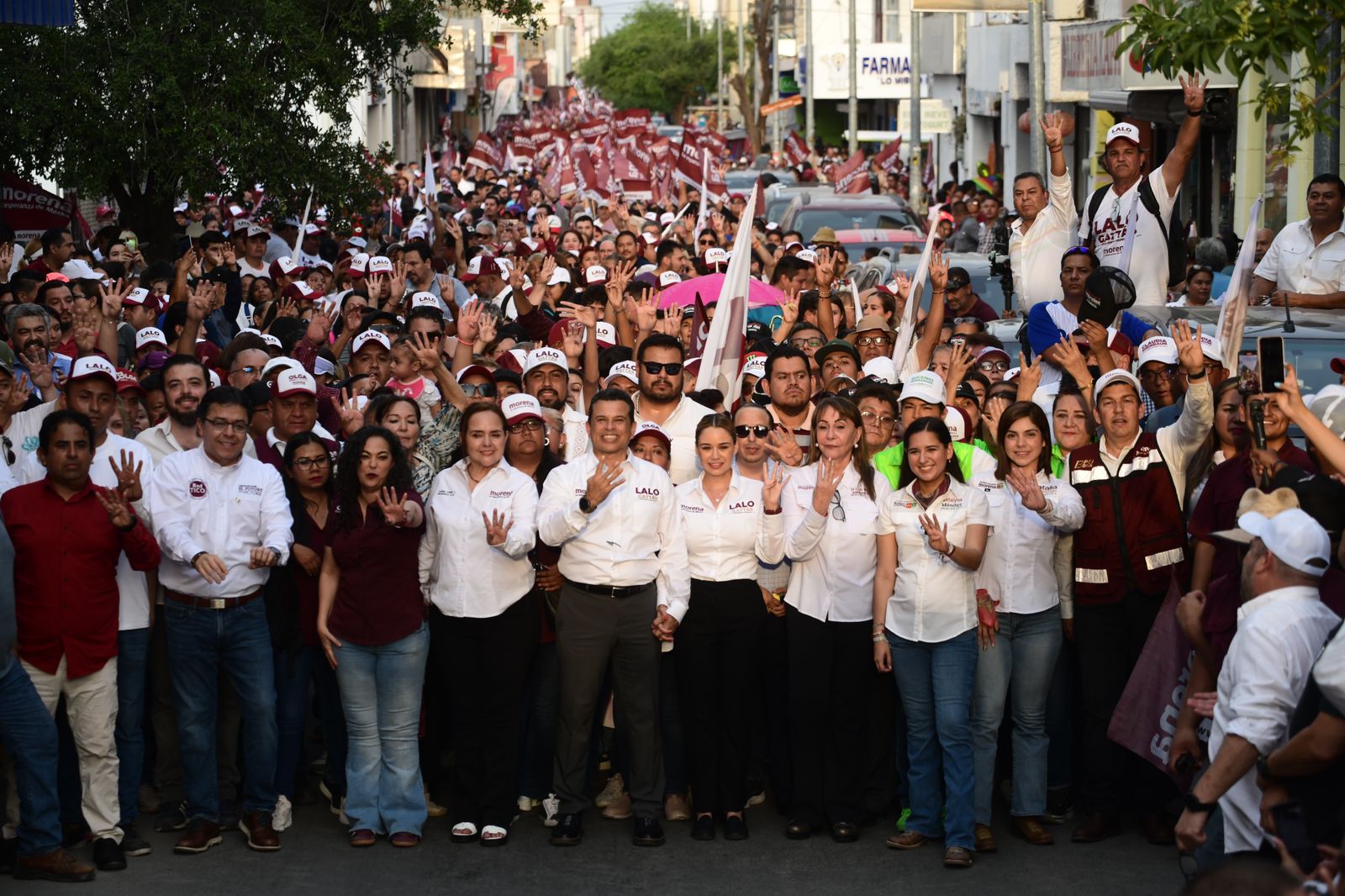 En multitudinario evento, estuvo acompañado de su esposa Lucy de Gattás e hijos, y candidatas de Morena al Senado Olga Sosa, a diputadas locales Blanca Anzaldúa y Katalina Méndez, como de Pepe Braña candidato a diputado federal.