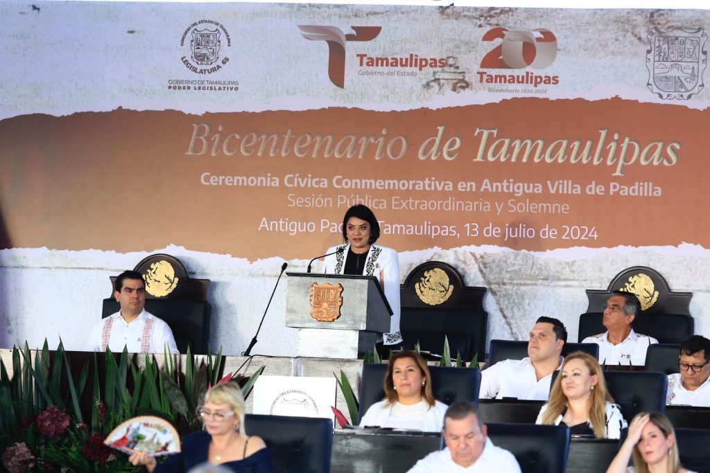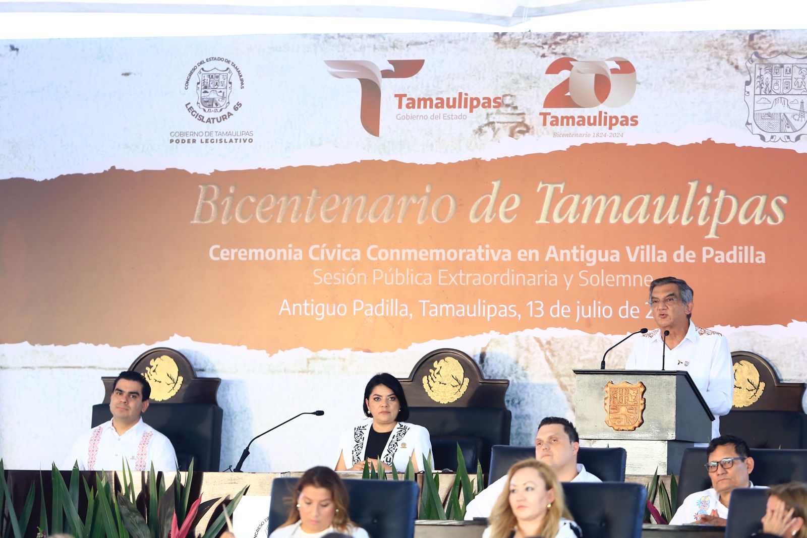 «Desde entonces han transcurrido 200 años que han sido testigos de muchas generaciones de hombres y mujeres que con su talento, esfuerzo, valor y profundo amor por Tamaulipas lograron solventar invasiones, pérdidas del territorio, conflictos nacionales y locales en donde, con vocación nacionalista, en esta última trinchera al noreste del territorio nacional siempre defendieron la patria de todos los mexicanos, demostrando el carácter firme pero también conciliador y noble de las y los tamaulipecos», indicó.