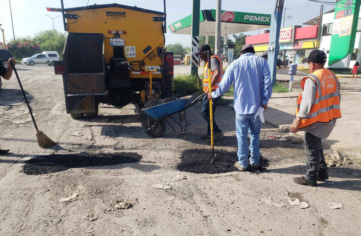 Cd. Victoria, 8 de agosto 2024. – Con una inversión superior a los 15 millones de pesos, el Gobierno de Victoria y la Secretaría de Obras Públicas del Estado activaron el programa emergente de bacheo en la ciudad para reparar carpeta asfáltica dañada por las lluvias y tráfico vehicular.