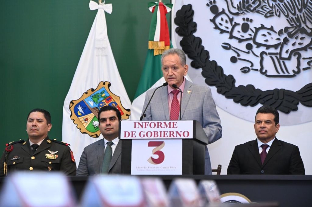 Cd. Victoria, 3 de septiembre 2024. – A seguir transformando un futuro de bienestar y desarrollo próspero para Victoria, se comprometió el Presidente Municipal Eduardo Gattás Báez, al rendir este martes su Tercer Informe de Gobierno ante la sociedad victorense, en el que recibió el respaldo del gobernador Américo Villarreal Anaya para consolidar los proyectos que se tiene en marcha en la Capital del Estado.