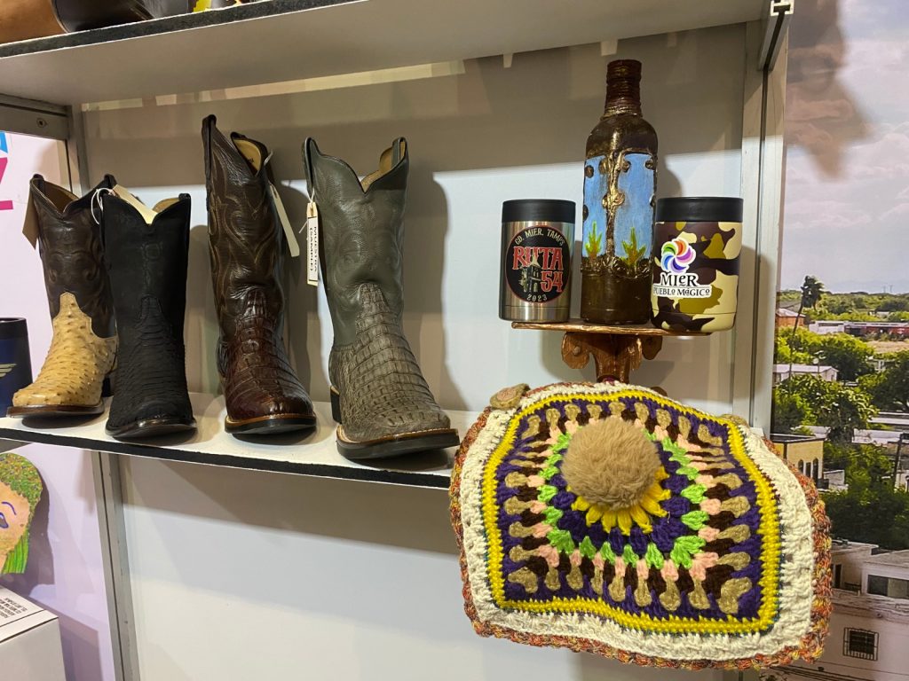 En los stands, hay gran variedad de artesanías encabezadas por la clásica cuera tamaulipeca. Además de bolsas con las grecas tamaulipecas, botas de piel de cocodrilo, sombreros, botellas, dulces cristalizados, las típicas cachuchas, productos tejidos, entre muchos objetos más, con lo que ¡Tamaulipas, seguro te enamora!