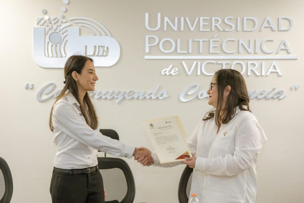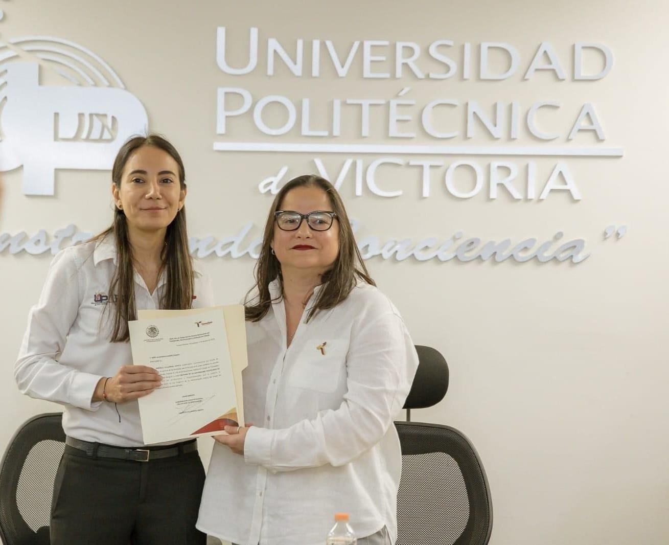 Ciudad Victoria, Tamaulipas.– Trabajar en busca de la excelencia educativa con una visión humanista y transformadora, fue la encomienda que recibió Abril Alejandra Ramírez Erazo de parte de Lucía Aimé Castillo Pastor, secretaria de Educación de Tamaulipas, al serle entregado el nombramiento oficial como rectora de la Universidad Politécnica de Victoria (UPV).