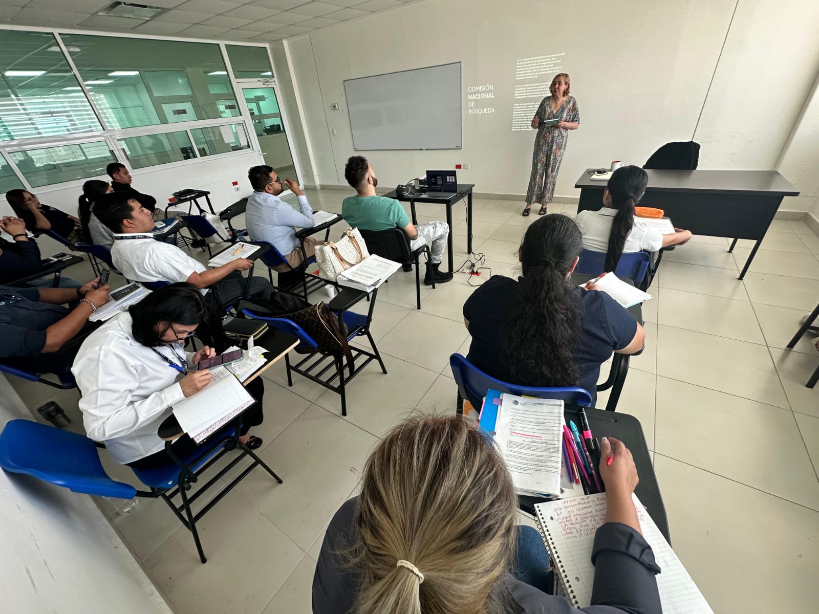 Quien fuera la primera comisionada de Búsqueda de Personas Desaparecidas del Estado de México (COBUPEM), cuya entidad actualmente muestra el mayor índice de localización de personas desaparecidas en México, recientemente fue invitada por el rector Willy Zúñiga Castillo a impartir cátedra en la (USJT) para elementos de la Fiscalía de Justicia del Estado (FGJ).