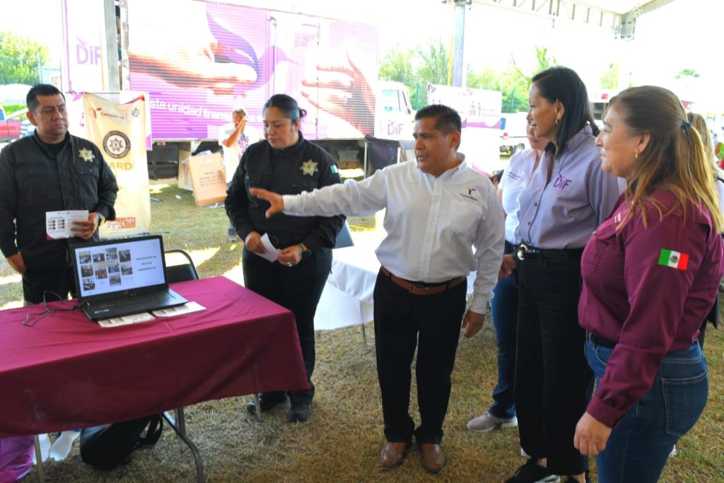 Camargo, Tamaulipas. – A través de las unidades de la Guardia Estatal de Género, Cibernética y el área de reclutamiento, la Secretaría de Seguridad Pública de Tamaulipas (SSPT) mantiene la proximidad con la ciudadanía asistente a la brigada ‘’Transformando Familias’’ celebrada en el municipio de Camargo.