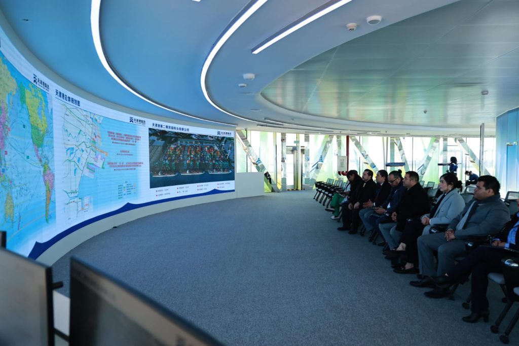 Tianjin, China. – Al continuar la gira de trabajo por parte de la Secretaría de Desarrollo Energético en la República Popular China, el titular de la dependencia, José Ramón Silva, visitó la empresa Tianjin Port Group para conocer las instalaciones y la tecnología aplicada, en busca de una colaboración con el Puerto del Norte.