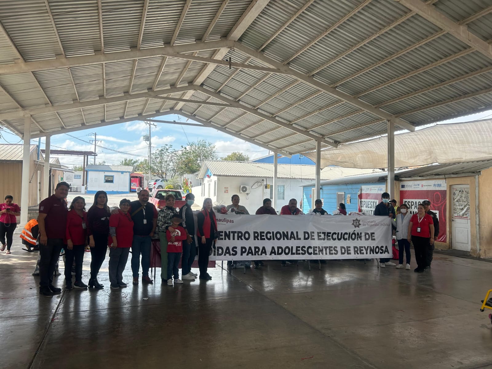 Reynosa, Tamaulipas.- Reflejo del humanismo que rige la administración del gobernador, Américo Villarreal Anaya, adolescentes que cumplen una medida en externamiento en el municipio de Reynosa llevaron distintos donativos al albergue para migrantes Senda de Vida.