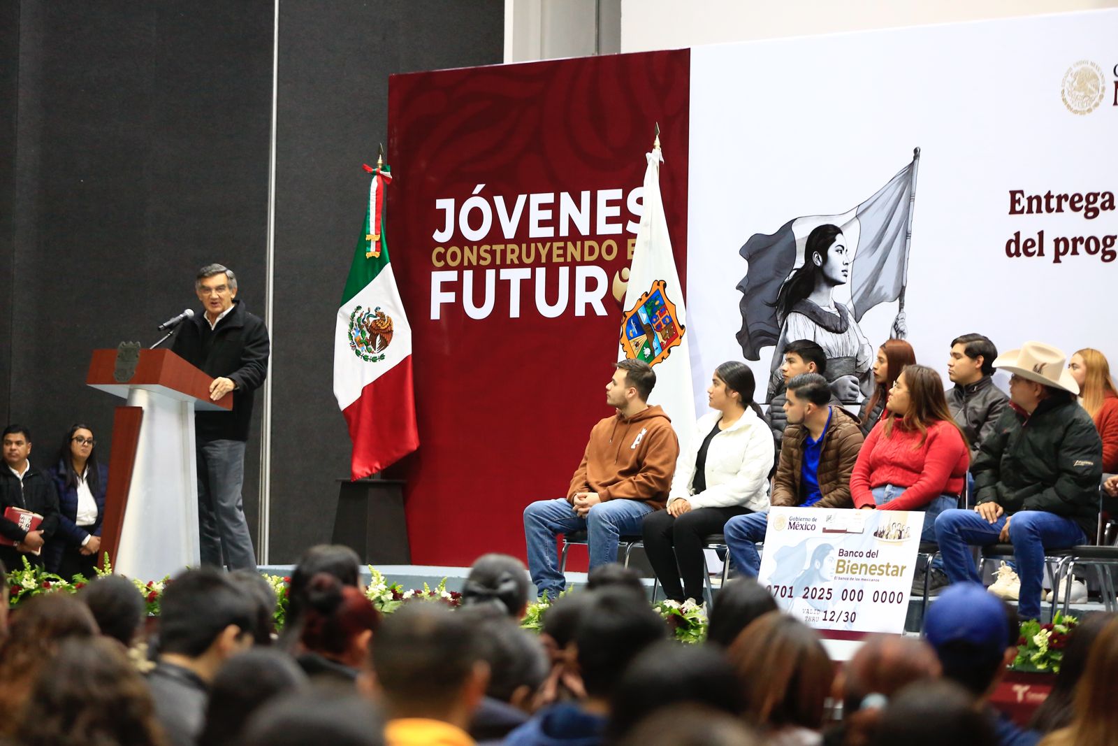 En un evento realizado en el Polyforum “Rodolfo Torre Cantú” la tarde de este martes, durante su discurso ante cientos de jóvenes presentes, el mandatario estatal los alentó a aprovechar esta oportunidad para capacitarse y fortalecer su desarrollo personal con este apoyo económico.