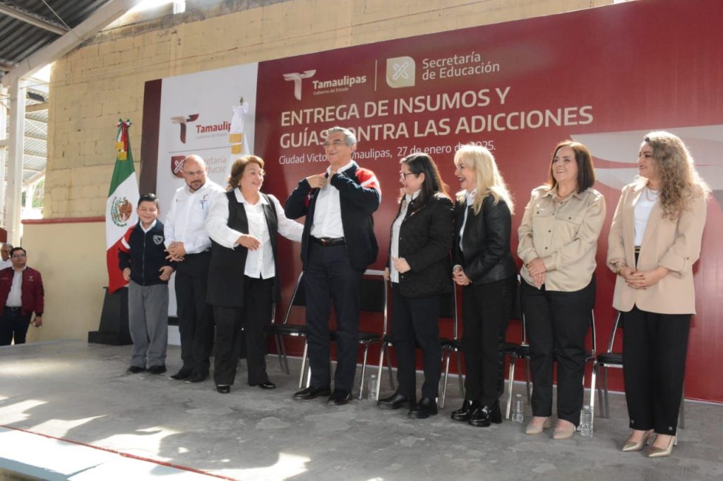 Ciudad Victoria, Tamaulipas.- En un esfuerzo sin precedentes para que las y los alumnos de educación básica tengan las herramientas necesarias para su formación académica, el gobernador de Tamaulipas Américo Villarreal Anaya hizo entrega de 305 “tablets”, además de mobiliario escolar por el orden de los 27.1 millones de pesos que beneficiará a 23 mil 343 estudiantes de 30 municipios y, de manera simbólica, distribuyó 305 mil 377 guías contra las adicciones, que serán repartidas a estudiantes de educación media superior.