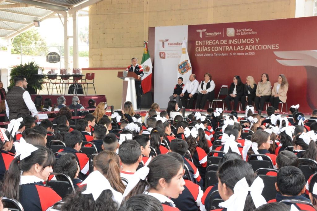 También señaló que el evento fue el marco para entregar las guías contra las adicciones de educación básica y media superior, reiterando el llamado a las y los estudiantes a alejarse de las drogas.
