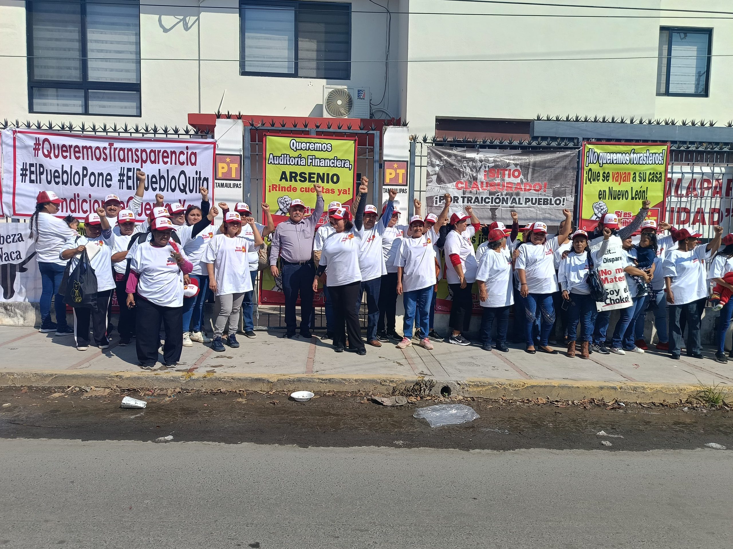 «Hoy nos reunimos aquí porque estamos cansados de la opacidad, del abuso y de la corrupción que impera dentro del Partido del Trabajo de Tamaulipas», dijo un manifestante que pidió omitir su nombre.