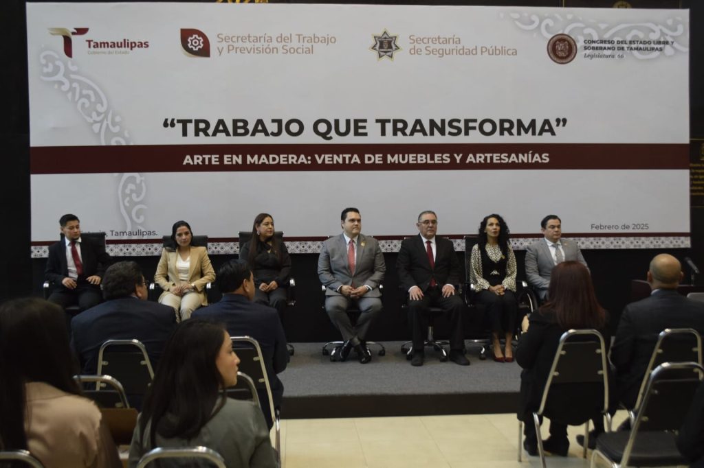 Ciudad Victoria, Tamaulipas.- Resultado del trabajo interinstitucional entre las Secretarías de Seguridad Pública (SSPT), la del Trabajo y Previsión Social (STPST) en coordinación con el Congreso del Estado Libre y Soberano de Tamaulipas, se inauguró la exposición y venta de muebles y artesanías hechas en los cinco Centros de Ejecución de Sanciones (CEDES) de la entidad, denominada ‘’Trabajo que Transforma’’.