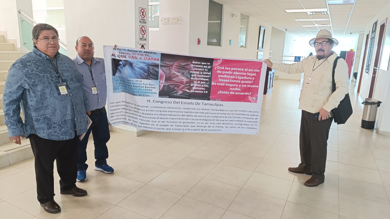El abogado dijo que con el respaldo de varios pastores evangélicos reunirán más firmas para entregar a los diputados locales de Tamaulipas esperando que no aprueben la ley que permitirá a las mujeres interrumpir el embarazo en contra de quienes se manifiestan a favor de la vida.