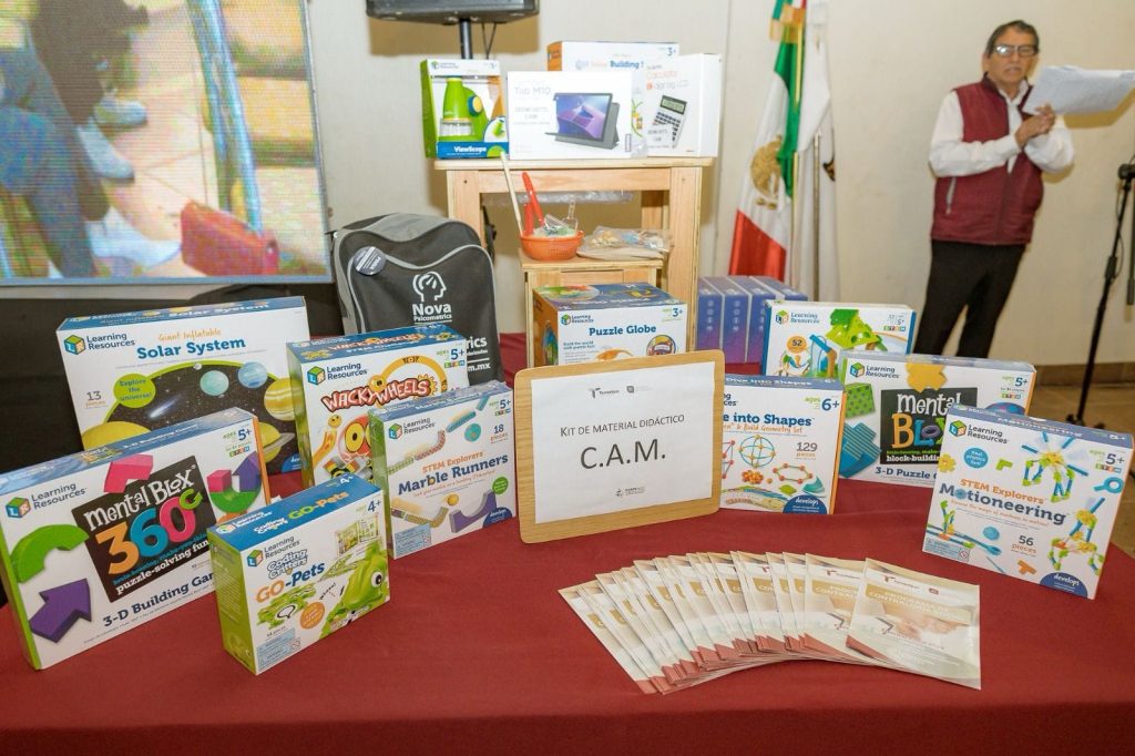 Entre los artículos que recibieron los CAM como parte del Programa de Fortalecimiento de los Servicios de Educación Especial, se encuentran: calculadora parlante, kit de ciencias para estudiantes con discapacidad, prueba de inteligencia PINNA y 4 tablets; y para las USAER, los apoyos consisten en mesa sensorial, kit de ciencias y cuadernillo de aptitudes sobresalientes, prueba de evaluación adaptativa ECAD y 5 tablets.