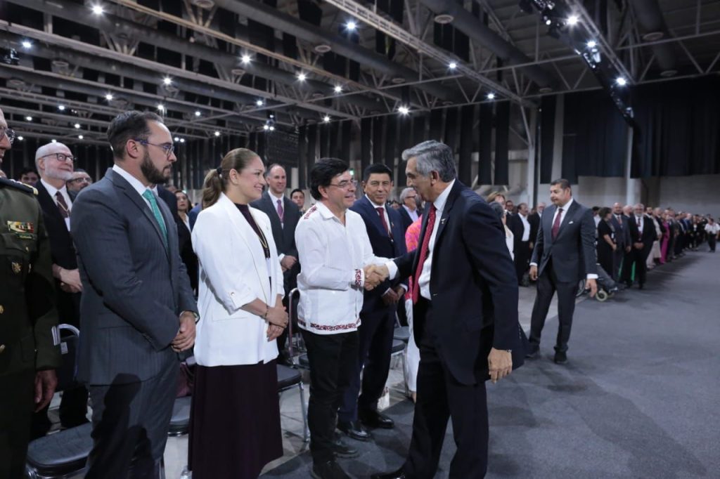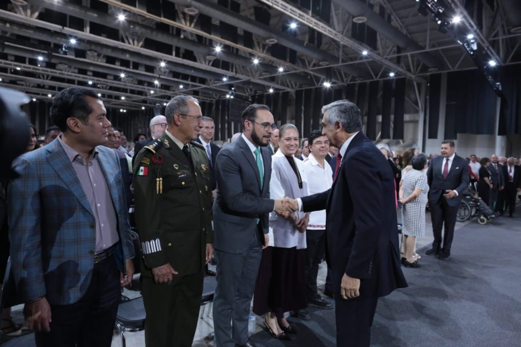 Acompañado por la doctora María de Villarreal, presidenta del DIF Estatal; la gobernadora de Veracruz, Rocío Nahle García; el gobernador de Oaxaca, Salomón Jara Cruz; el gobernador de Puebla, Alejandro Armenta Mier; y el coordinador de asesores de la Presidencia de la República, Jesús Ramírez Cuevas, así como representantes de las gobernadoras y gobernadores de Tlaxcala, San Luis Potosí, Quintana Roo, Nuevo León, Zacatecas y Coahuila, además del presidente de la Cámara de Diputados, Sergio Gutiérrez Luna, senadores, senadoras y diputados federales y locales, el gobernador agradeció a todos los presentes la distinción de acompañarlo en este evento.