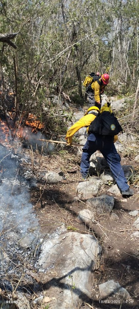Pie a tierra se ha desplegado personal de brigadas federales, estatales, municipales y rurales que se suman a los esfuerzos para controlar el complejo de incendios que viene afectando los ecosistemas al sur de Tamaulipas.