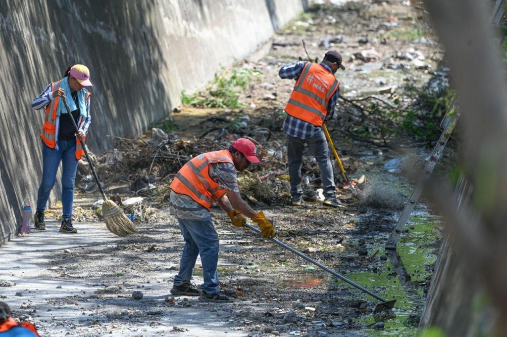 Como parte del recorrido de supervisión de obras y acciones que despliega diariamente por el municipio, supervisó, coordinó y apoyó en las labores de limpieza de este conductor de agua de lluvia, acción que agradecieron vecinos por dar pronta respuesta a su petición.