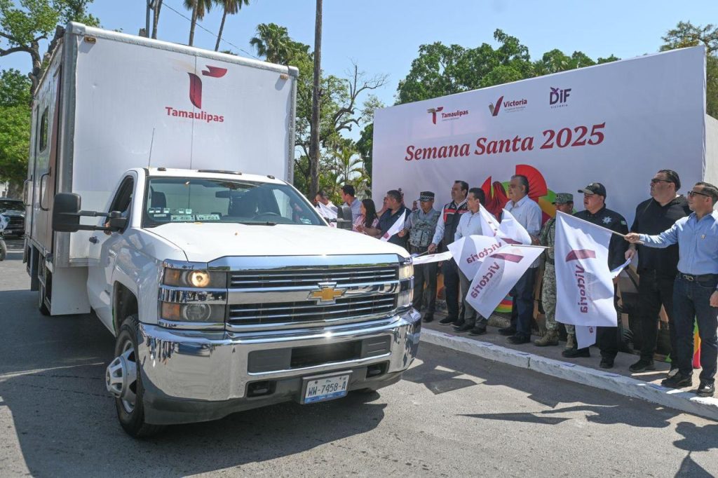 Cd. Victoria, 10 de abril. – Con acciones preventivas para que el periodo vacacional de Semana Santa sea tranquilo, seguro y con saldo blanco, el presidente municipal de Victoria Eduardo Gattás Báez dio el banderazo de salida a 300 elementos de seguridad y protección civil federal, estatal y municipal.