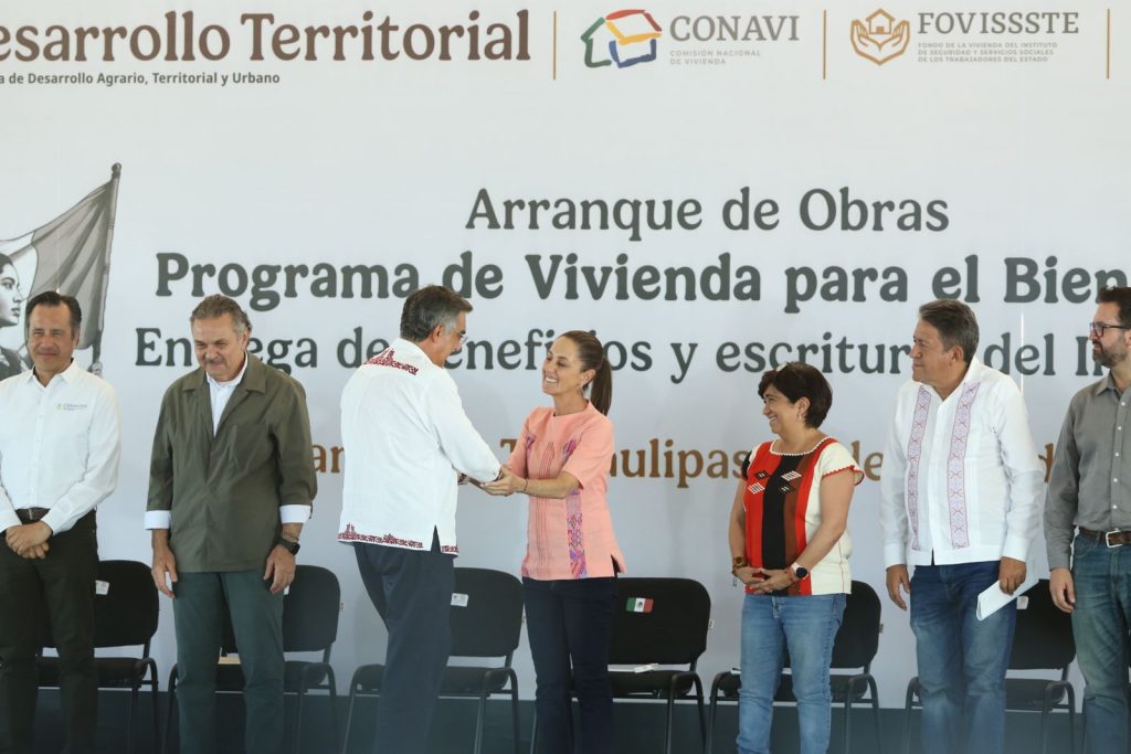 Matamoros, Tamaulipas. – La presidenta Claudia Sheinbaum Pardo, acompañada por el gobernador Américo Villarreal Anaya, puso en marcha el Programa de Vivienda para el Bienestar, que permitirá la construcción de 48 mil casas nuevas en Tamaulipas, a través del Infonavit y la Conavi, tras reiterar que la vivienda ha dejado de ser una mercancía y es ahora un derecho del pueblo.