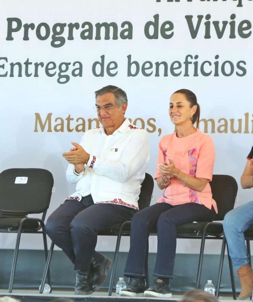 Al presidir el evento en el fraccionamiento Las Alamedas de esta ciudad, la presidenta de México hizo un reconocimiento al gobernador del Estado y destacó que Villarreal Anaya hace un gran trabajo por Tamaulipas. «Estoy muy contenta de estar en Matamoros, de estar en Tamaulipas. ¡Arriba Tamaulipas!», dijo.