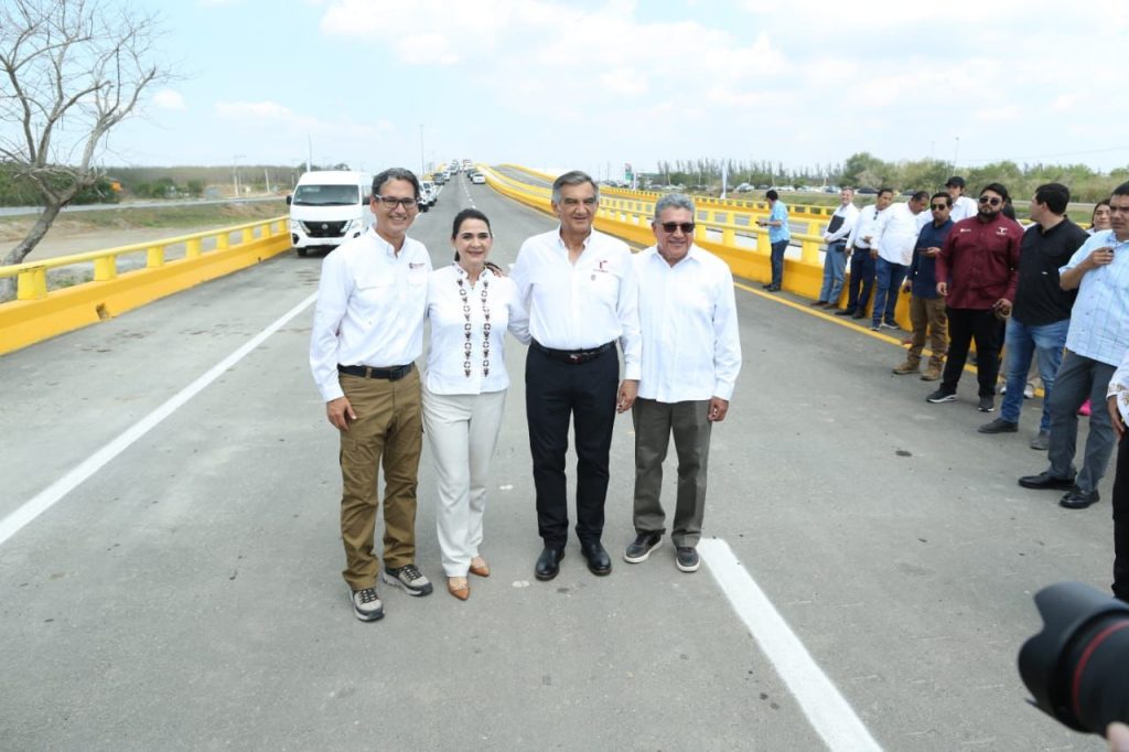 Acompañado por los alcaldes de Altamira, Armando Martínez y de Madero, Erasmo González y la alcaldesa de Tampico, Mónica Villarreal, el gobernador del Estado, cortó el listón inaugural del puente en el que se invirtieron más de 293 millones de pesos.
