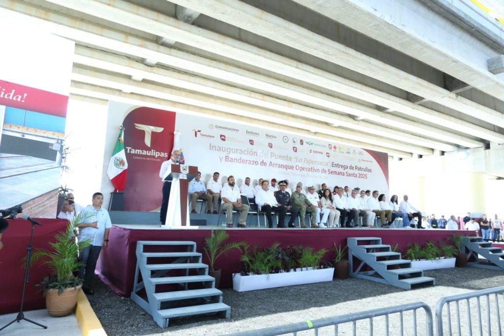 Altamira, Tamaulipas. – El gobernador Américo Villarreal Anaya inauguró el puente «La Esperanza», una obra que permaneció en el abandono por casi 15 años y aseguró que esta construcción se asemeja al futuro de Tamaulipas porque tiene «bases sólidas y firmes».