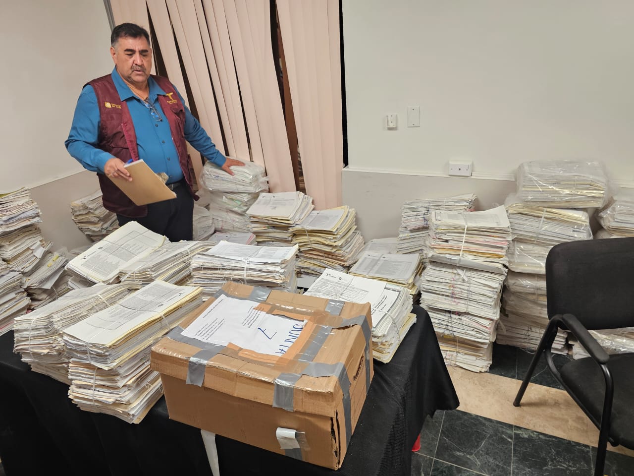 Nuevo Laredo, Tamaulipas.- En el marco de una política laboral comprometida con la transparencia, la eficiencia y el bienestar de las y los tamaulipecos, la Dirección de Inspección y Vigilancia de la Secretaría del Trabajo y Previsión Social llevó a cabo una visita a la Junta Especial Número 8 de Conciliación y Arbitraje, con sede en Nuevo Laredo, con el objetivo de revisar y dar seguimiento a los expedientes laborales en rezago.