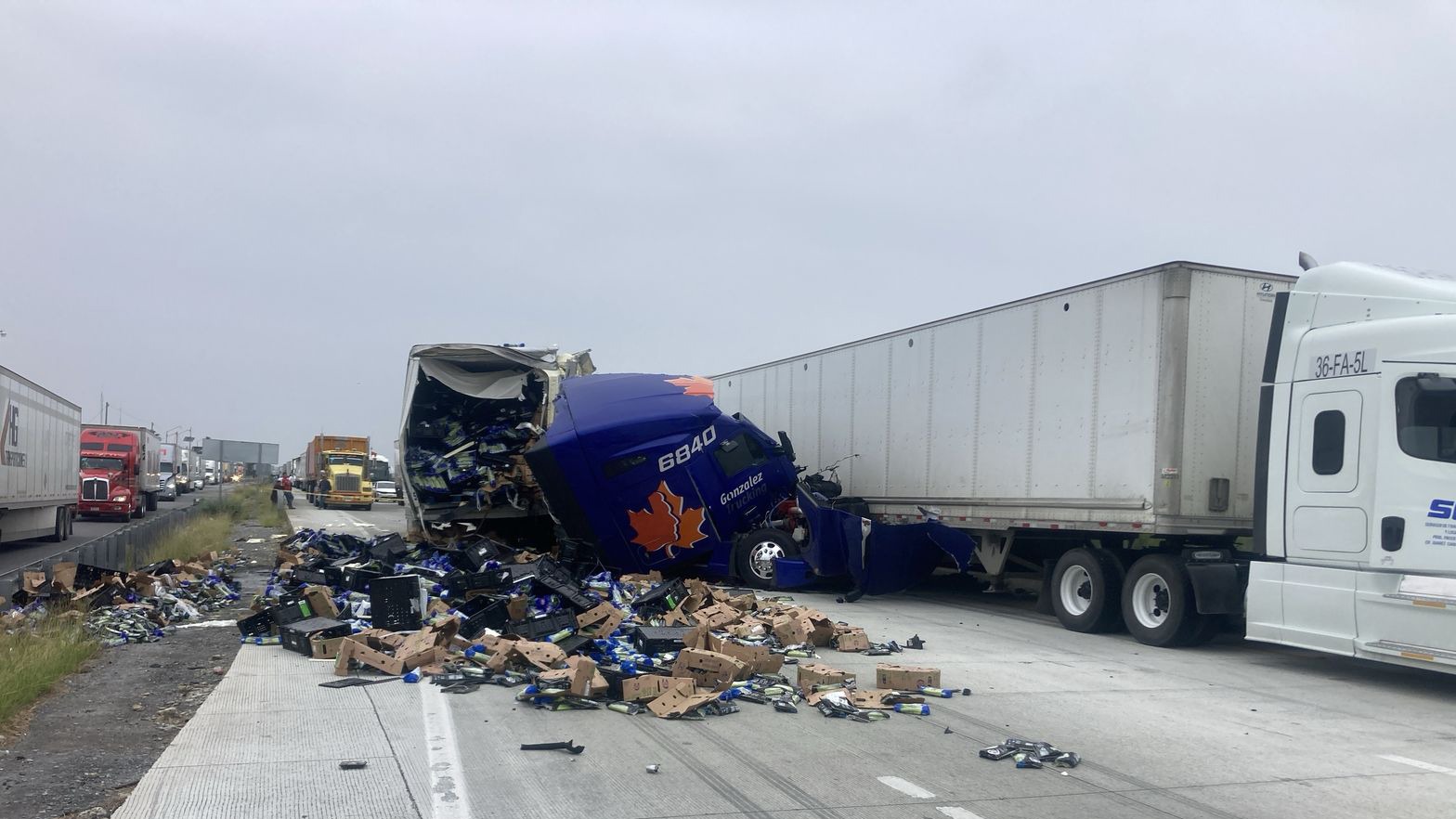 Preliminarmente, la unidad que se encontraba estacionada es un tráctor marca Freightliner, propiedad de la empresa Servicio de Transporte Internacional y Local, S.A. de C.V., con placas de circulación 36-FA-5L del Servicio Público Federal. Asimismo, la unidad que se impactó por detrás, y donde perdió la vida el operador, es propiedad de González Trucking, con placas de circulación 16-BB-9Z, del Servicio Público Federal.