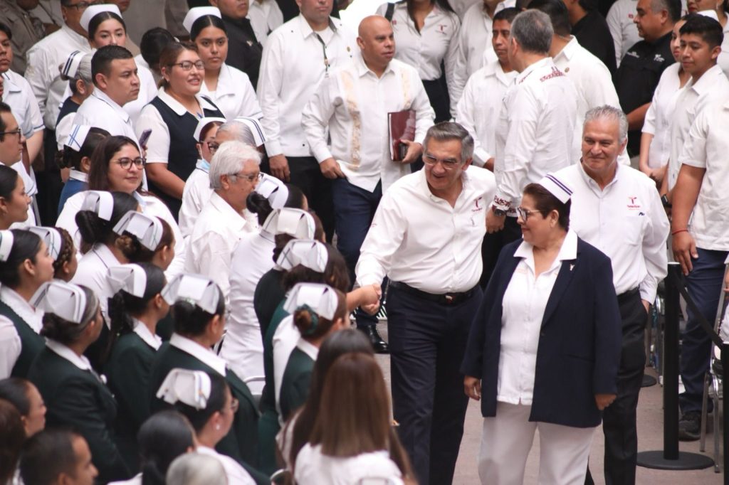 Al felicitar a las y los enfermeros, Hernández Navarro aseguró que, gracias a su esfuerzo diario, se han reconstruido servicios abandonados, se han erradicado innecesarias burocracias y se ha recuperado el carácter público de la salud. “Y en todo ese proceso, quienes ejercen la noble labor de la enfermería han estado ahí, al frente, sosteniendo la atención, organizando el cuidado, enseñando, previniendo y acompañando la lesión”, afirmó.