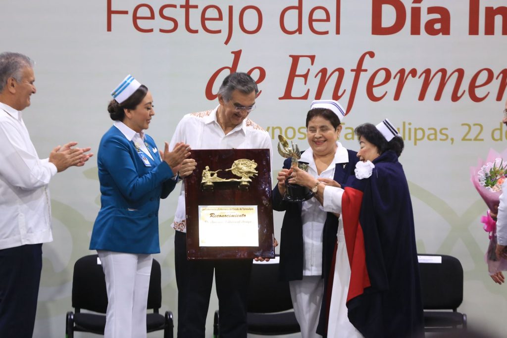 Por su parte, el secretario de Salud, Vicente Joel Hernández Navarro, afirmó que este reconocimiento es un compromiso cumplido del gobernador Américo Villarreal y un homenaje a la vocación de servicio, la trayectoria, el liderazgo de las y los enfermeros de Tamaulipas, «con el que día a día brindan cuidados de calidad al paciente, a su familia y a la comunidad», dijo.