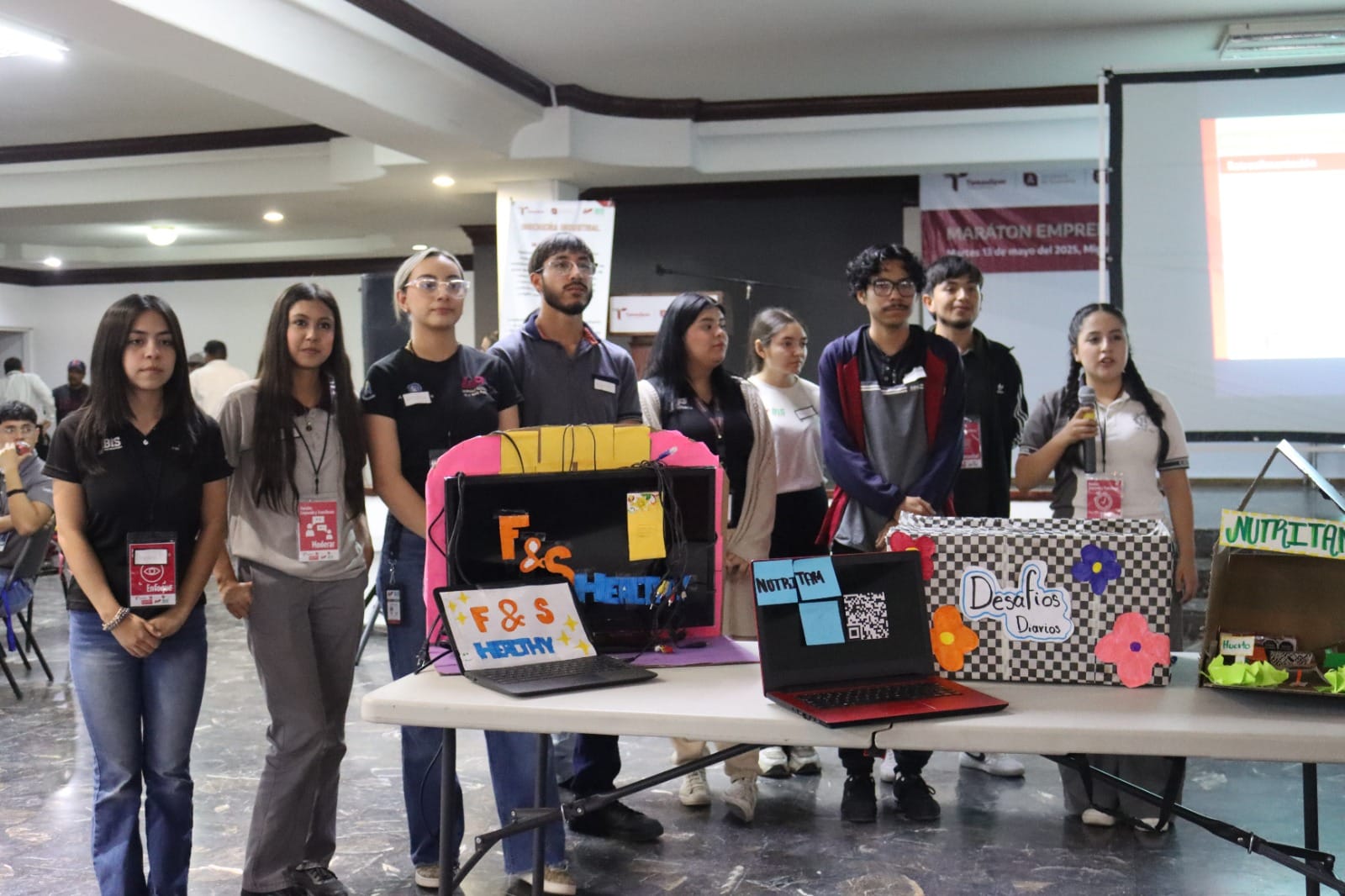 Explicó que, durante el maratón, los equipos expusieron una metodología estructurada para la identificación del problema, la ideación de soluciones, el desarrollo de propuestas y el diseño de una maqueta representativa, utilizando materiales reciclables como cartón, botellas, tapas plásticas y aparatos eléctricos en desuso.