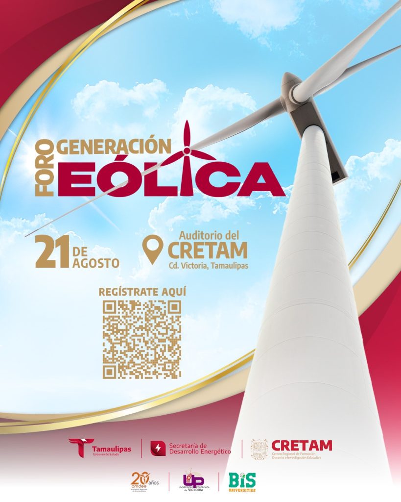 Ciudad Victoria.- Con el fin de generar un nodo de conexión para compartir avances, ideas y mejoras en las energías renovables, la Secretaría de Desarrollo Energético anunció el próximo Foro “Generación de Energía Eólica” en la capital del estado.