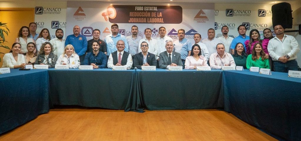 Ciudad Victoria, Tamaulipas.- El secretario del Trabajo y Previsión Social de Tamaulipas, Luis Gerardo Illoldi Reyes, participó en el Foro Estatal sobre la Reducción de la Jornada Laboral, realizado en las instalaciones de la Cámara Nacional de Comercio (Canaco) de Victoria, donde se abordaron los retos y oportunidades de esta iniciativa para el sector productivo y la fuerza laboral del estado.