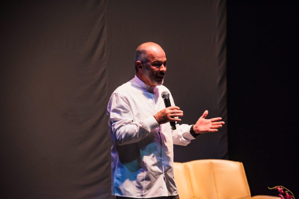 «Ustedes, a través del teatro, son portadores e inventores de historias, relatos y narraciones. Son privilegiados en la posibilidad de fomentar la palabra y les deseo mucho éxito, no solo el teatro, también en esa capacidad de gestionar la cultura, que se trata de gestionar lo humano», apuntó durante su charla.