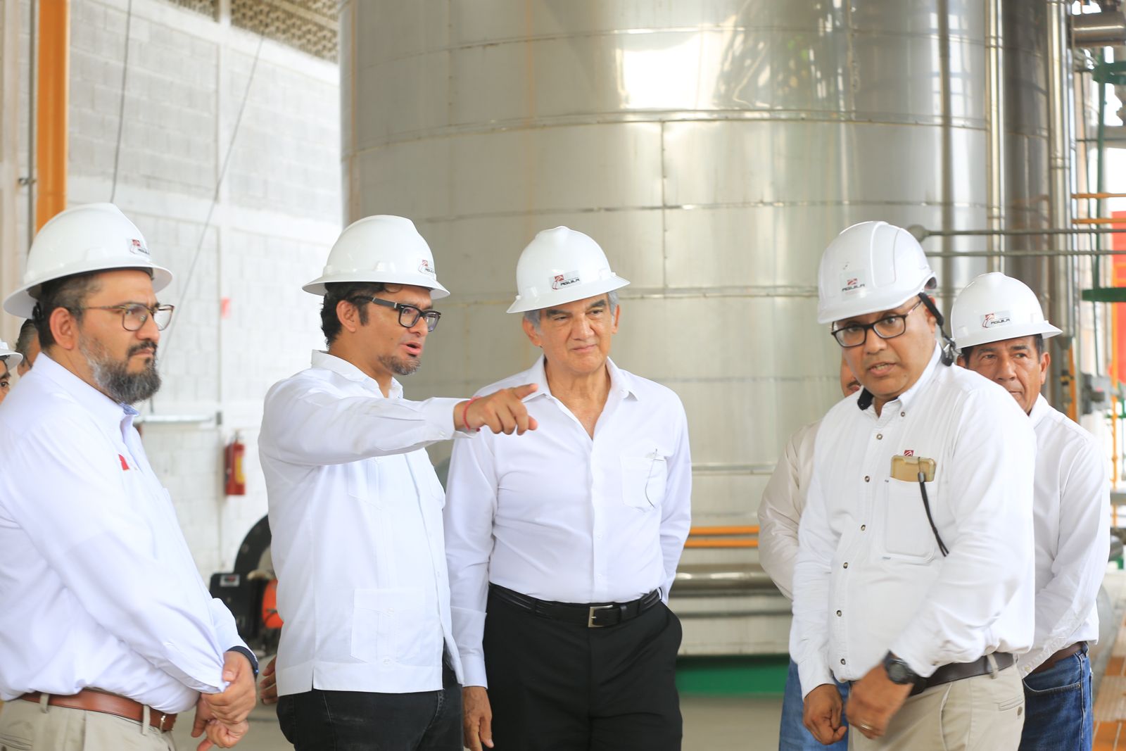 El gobernador fue recibido por Emilio González Juárez, gerente de la planta Green Bauen; Juan Marco Rodríguez, gerente General Adjunto y los consejeros técnicos del grupo: Efraín Rodríguez, José Luis Vargas y Carlos de la Rosa.