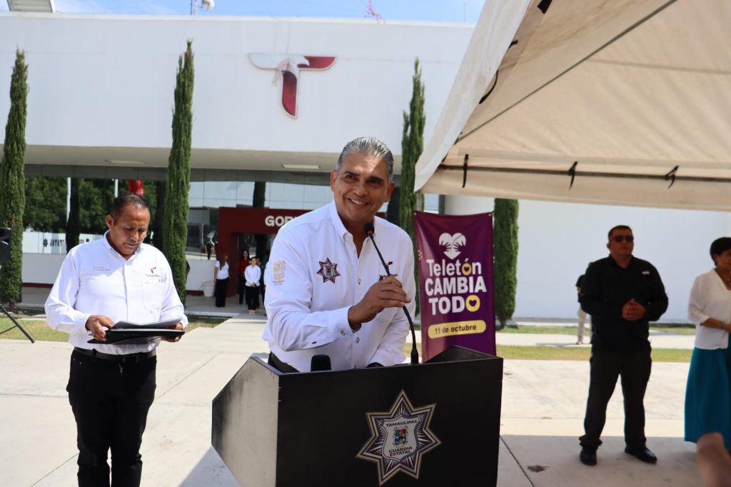 Ciudad Victoria, Tamaulipas.- Siguiendo la política humanista e instrucción del gobernador, Américo Villarreal Anaya de contribuir a las causas sociales que benefician a la ciudadanía tamaulipeca, la Secretaría de Seguridad Pública de Tamaulipas (SSPT) se sumó a la colecta anual del Teletón, misma que fue inaugurada por su titular, Carlos Arturo Pancardo Escudero.