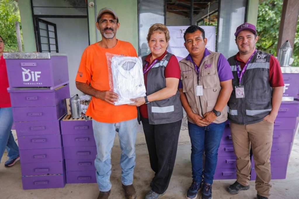Ocampo, Tamaulipas.– Con la finalidad de fortalecer la economía familiar y mejorar la calidad de vida en las comunidades rurales, el Sistema para el Desarrollo Integral de la Familia de Tamaulipas, que preside la doctora María de Villarreal, puso en marcha en el municipio de Ocampo el proyecto “Producción Sostenible de Miel”, una iniciativa que en su primera etapa beneficia a 15 familias del ejido Eligio Treviño.