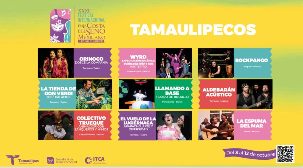 En conferencia de prensa, la secretaria de Bienestar Social (SEBIEN), Silvia Casas González, junto al director del Instituto Tamaulipeco para la Cultura y las Artes (ITCA), Héctor Romero Lecanda, precisó que del 3 al 12 de octubre de este año, los teatros, foros, plazas y espacios abiertos de Tamaulipas serán los escenarios en los que se presentarán 66 artistas tamaulipecos, 26 propuestas nacionales y 9 proyectos internacionales, con un enfoque de inclusión y diversidad, y especial atención a las infancias y juventudes.