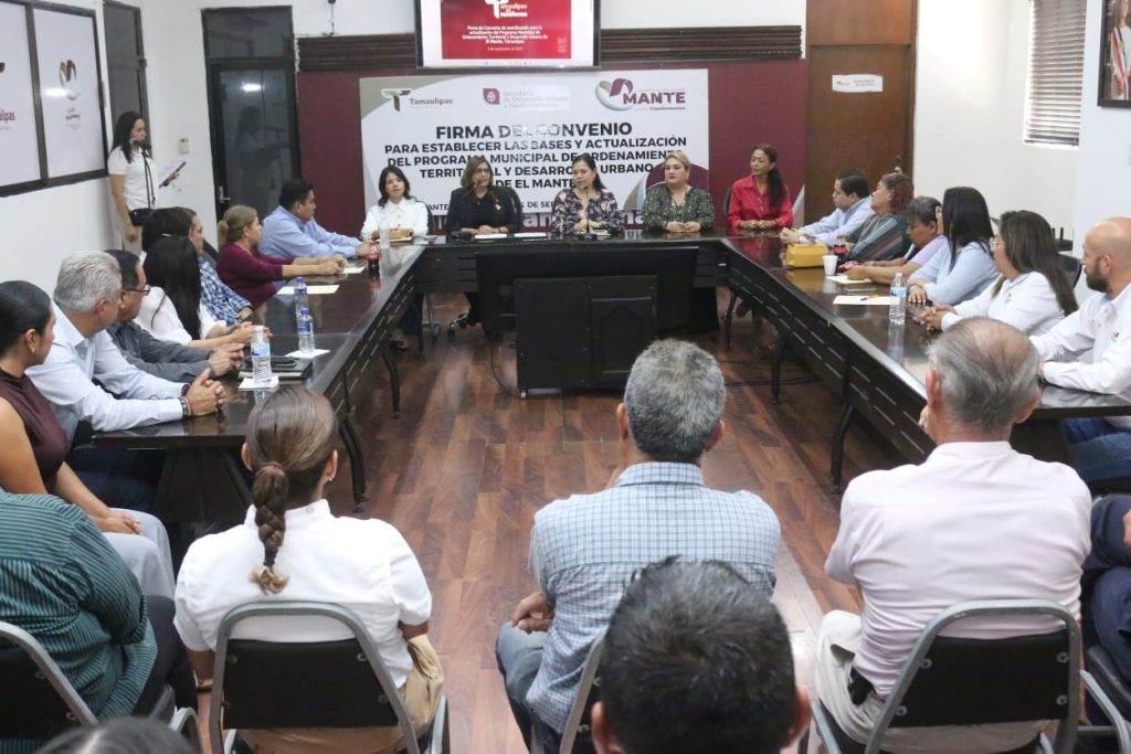 El Mante, Tamaulipas.- Con la firma de un convenio de coordinación entre la Secretaría de Desarrollo Urbano y Medio Ambiente (SEDUMA) y el Gobierno Municipal de El Mante, inició un proceso clave para actualizar el Programa Municipal de Ordenamiento Territorial y Desarrollo Urbano (PMOTDU). Este acuerdo establece las bases para garantizar un crecimiento ordenado, sostenible y con visión de futuro en beneficio de las familias mantenses.