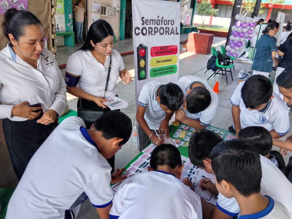 Esta actividad estuvo dirigida a estudiantes de la Escuela Secundaria General Número Cinco “Profesor Juventino Pineda y Ortega” y abordó temas relativos a la salud sexual y reproductiva como los métodos anticonceptivos, la Cartilla de los Derechos a la Protección de Salud y Seguridad Social así como la dinámica ‘’semáforo corporal’’ para prevenir violencia sexual.