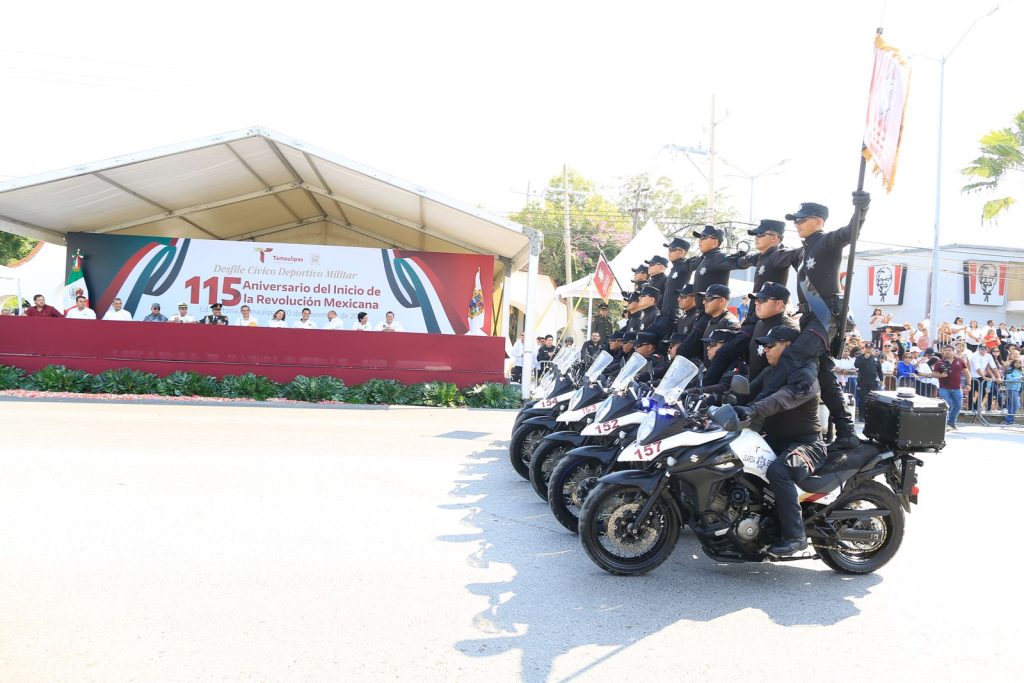 -Presidida por el gobernador Américo Villarreal, la fiesta cívica transcurre en paz, con la participación de más de 3,500 estudiantes, militares y elementos de seguridad