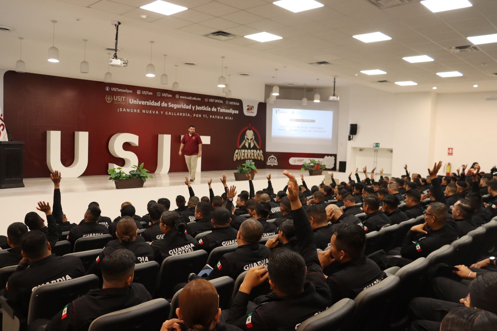 Ciudad Victoria, Tamaulipas.- En el marco del Día Internacional de la Eliminación de la Violencia en Contra de las Mujeres, 150 elementos de la Guardia Estatal asistieron a la conferencia denominada ‘’Ustedes Cuidan de Nosotros, Pero ¿Quién Cuida de Ustedes?’’ celebrada en el auditorio de la Universidad de Seguridad y Justicia de Tamaulipas (USJT).