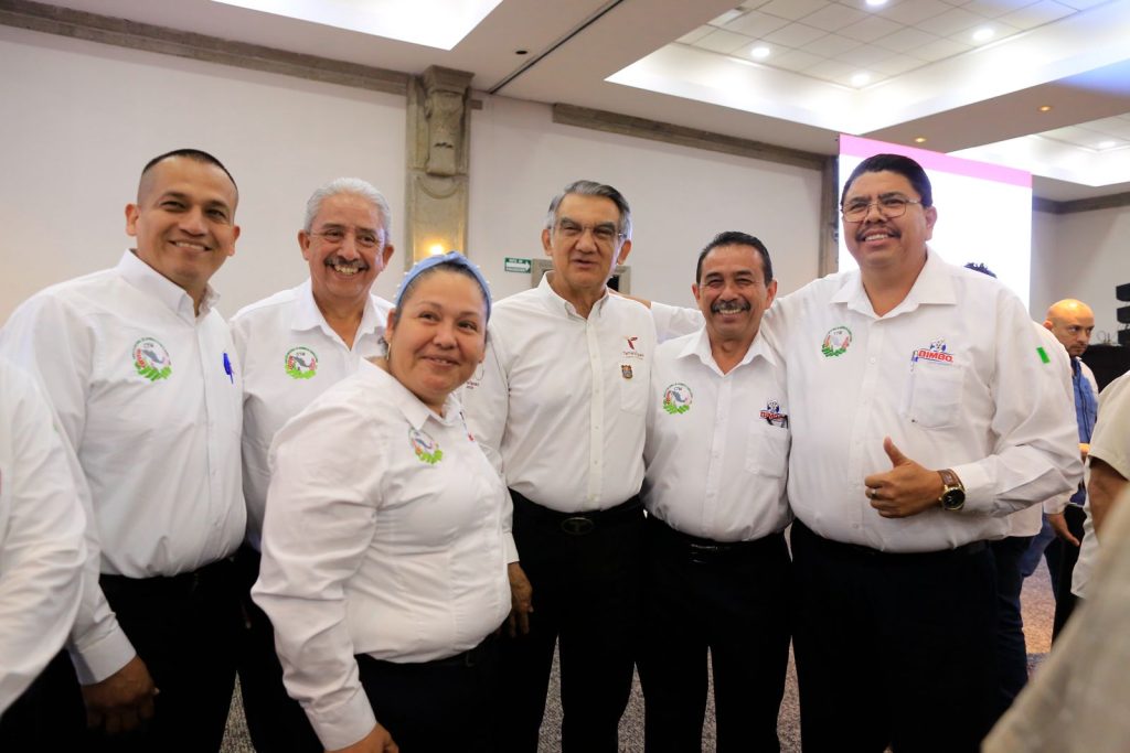 En el evento acompañaron al gobernador: Humberto Martínez Cantú, presidente del Consejo Nacional de la Industria Manufacturera de Exportación (Index); Abraham Rodríguez Padrón presidente de Canaco; Federico Alanís Peña presidente de Canacintra regional; Carlos Peña Ortiz, presidente municipal de Reynosa; Edmundo García Román, secretario general de la CTM; Reynaldo Garza Elizondo, secretario general adjunto de la CTM; Marcos Herrería Alamina, secretario general del Infonavit; Ana Luisa Abreu, directora de Comercialización del Infonavit y Mario Macías Robles, consejero propietario de la CTM.