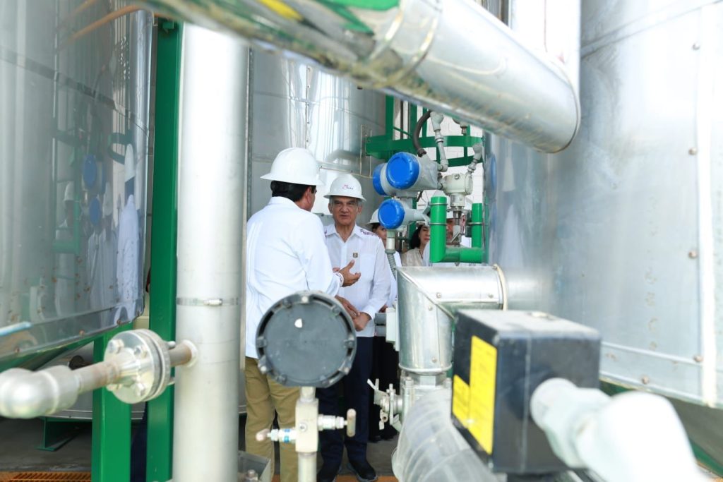 Altamira, Tamaulipas.– El gobernador de Tamaulipas, Américo Villarreal Anaya y el subsecretario de Industria y Comercio de la Secretaría de Economía federal, Vidal Llerenas Morales, realizaron un recorrido por la planta de pirólisis instalada en el municipio de Altamira, propiedad del Grupo Industrial Águila, donde constataron el avance de esta infraestructura encaminada a la transformación de residuos plásticos en combustibles alternativos.