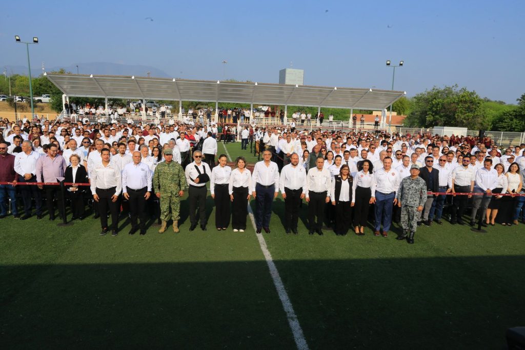 “La idea es que la participación de México en esta competencia de la Copa del Mundo de Futbol se quede, perdure y sirva como estímulo y semilla del deporte, de la cultura y de la grandeza de nuestra gran nación. Ese es el mensaje que venimos a dar desde este Parque Recreativo Siglo XXI, cuando estamos ya en la recta final de los preparativos de este gran evento internacional”, expresó el gobernador, al presidir la ceremonia cívica de honores, este lunes, en la cancha de futbol “Américo Amigo”.