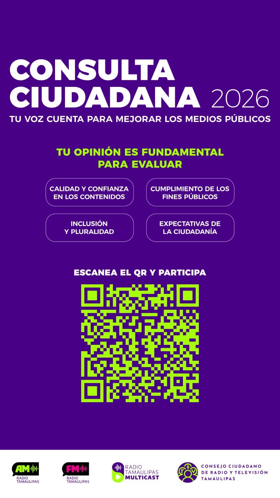 Ciudad Victoria, Tamaulipas.- El Consejo Ciudadano del Sistema Estatal de Radio y Televisión Tamaulipas (SERTT) lanza la consulta ciudadana “Escuchar-nos”, un ejercicio abierto que busca conocer la opinión de la población sobre el desempeño, contenidos y función social de los medios públicos del estado.