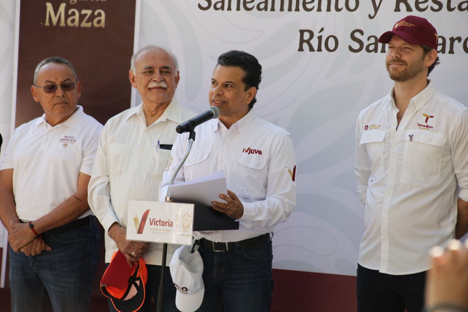Cd. Victoria, 20 de marzo de 2026.- Con una jornada de saneamiento y restauración en la margen del Río San Marcos, el alcalde de Victoria Eduardo Gattás Báez, junto a autoridades estatales y federales, celebró el Día Mundial del Agua promoviendo el proyecto “Con agua limpia”.